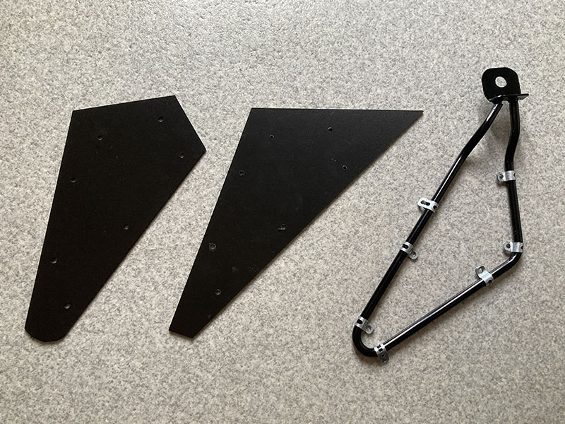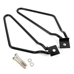 マウントには汎用のサイドバックサポートを使います。サイドバックサポートは元々バッグがタイヤ側に巻き込まれないようにする抑えであり、これ自体でバッグを保持するものではないし、さらにリアサスのボルトのみでの取り付けなので強度が少し心配ですが重いものを入れなければ大丈夫・・・だと思う(汗