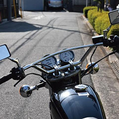 バーハンドル化の際に使ったALCAN HANDSディスティニーは気に入ってはいるんですが、微妙な絞り角度が長く乗ってると手首が疲れるのでもう少し普通の角度のハンドルにしたいな、と前から考えておりまして・・・・