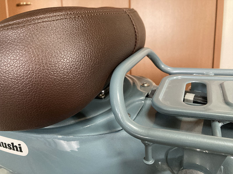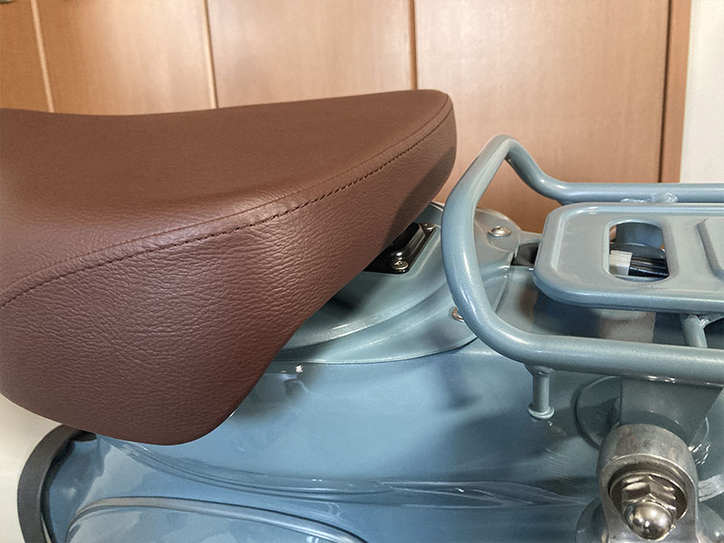 ヒンジに細工してシート位置を前方にズラす事も考えましたが素直にアウスタの薄型シングルシートに変更。色はKEPSPEEDと近いブラウンにしました。