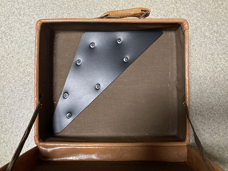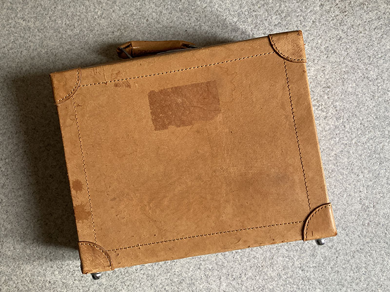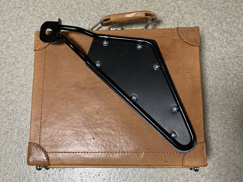 続いては、箱がなくなってしまった代わり・・・というわけではないのですが、かなり前に何かに使おうと買ってあった小さめのUsedトランクをサイドバッグにしちゃいます。貴重なアンティークとかではなく、確か1000円か2000円くらいのどこにでもありそうな中古品だったと思います。トランクの大きさは300x250x85mmくらい。まぁまぁ汚れてますがそれも「味」ってことで。