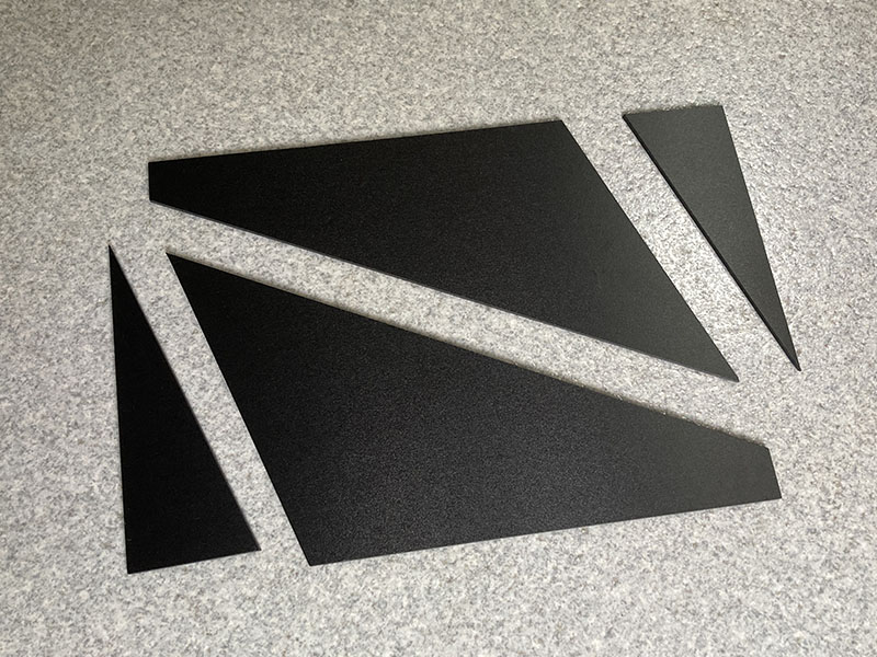 ホームセンターで300x200x3mmの塩ビ板を買ってきてご覧のようにカット。