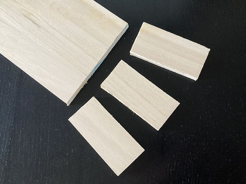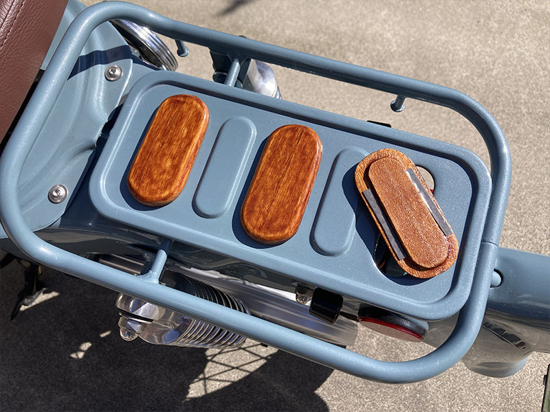 そして、ただキャリア交換しただけじゃつまんないのでリアキャリアにちょっと装飾を加えます。100均で木の板を買ってきてご覧のようにカット。