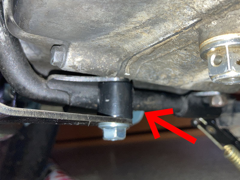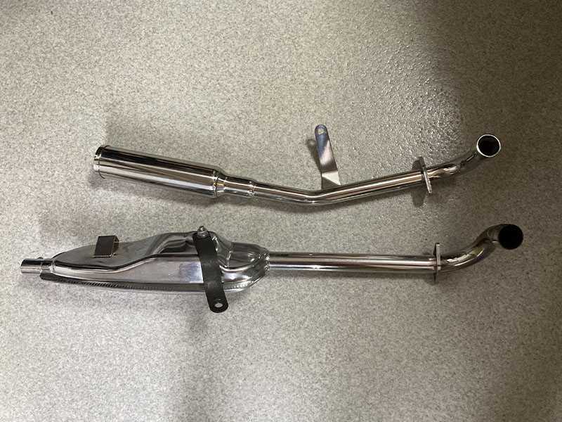 このマフラーはエンジン下にステップを付けてるボルトをこのカラーとロングボルトに変更して取り付けます。付けてしまうとステーはほぼ見えなくなるので、その点でもシンプルさが際立ちます。